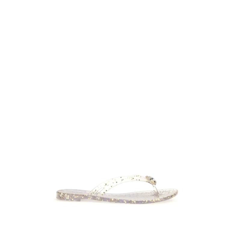 These Casadei thong sandals feature a glitter-finish upper designed for women. The footwear is constructed with a standard thong silhouette and is available in size 36.