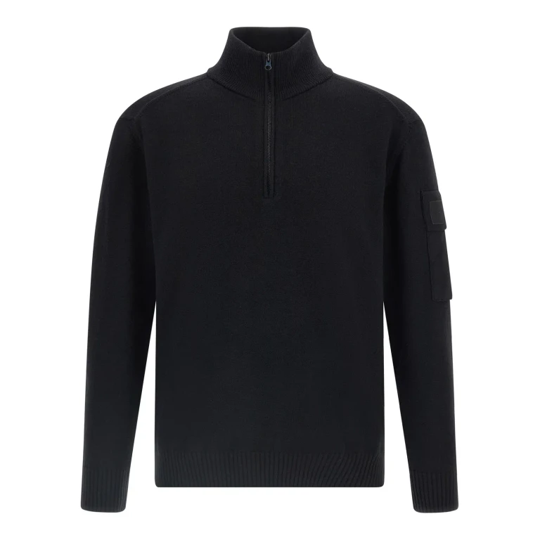 A cotton knit cardigan with a trucker collar, half-zip front, and dropped shoulders, made from organic cotton.