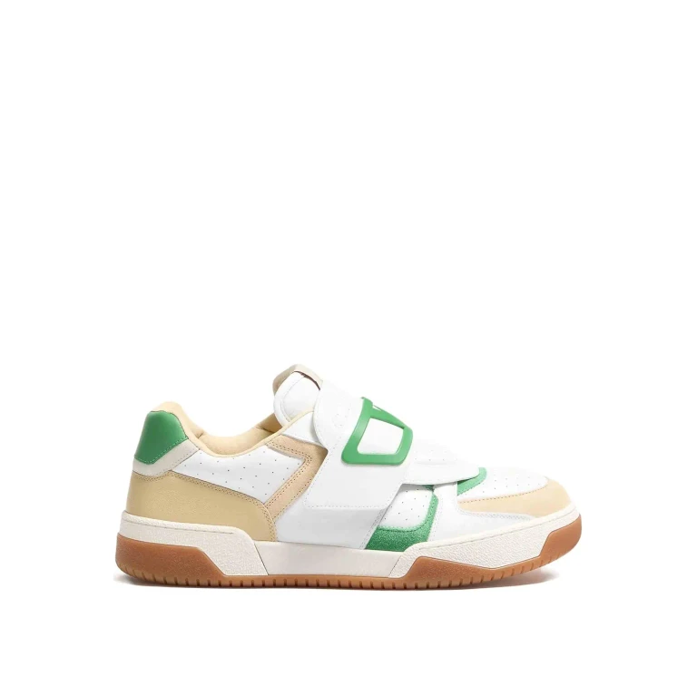 Valentino Garavani low-top sneakers in beige calf leather with perforated details, VLogo emblem, and contrasting rubber sole.