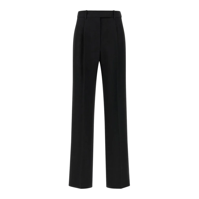 Tailored trousers in brown wool with zip, hook, and button closure, side and back welt pockets, and belt loops.