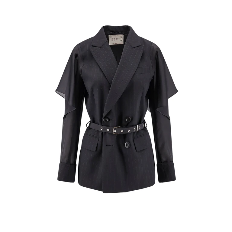 A women's dress by Sacai in black, crafted from a polyester-wool blend with double-breasted closure and cut-out back detail.