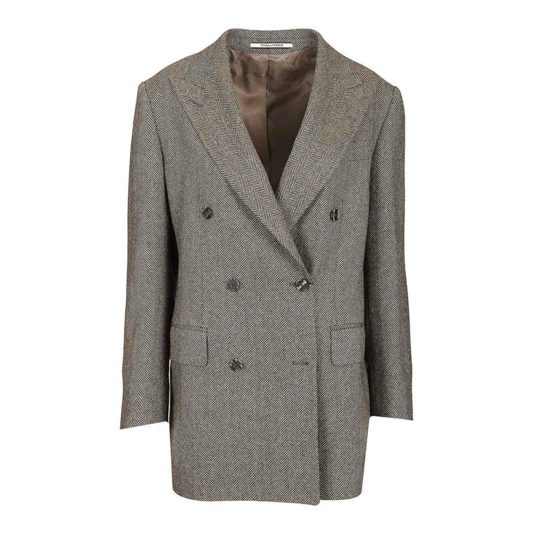 Women's double-breasted blazer in wool and viscose blend with lamé thread and micro sequin inserts, peak lapels, and monogram cupro lining.