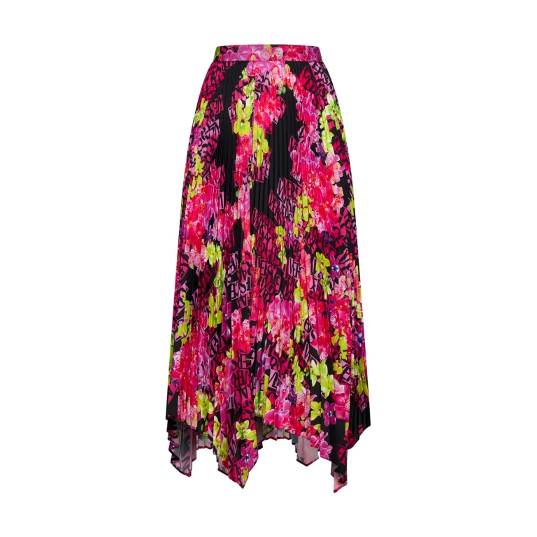 A draped midi skirt from Versace in black with an asymmetric hem for a bold, sophisticated look.