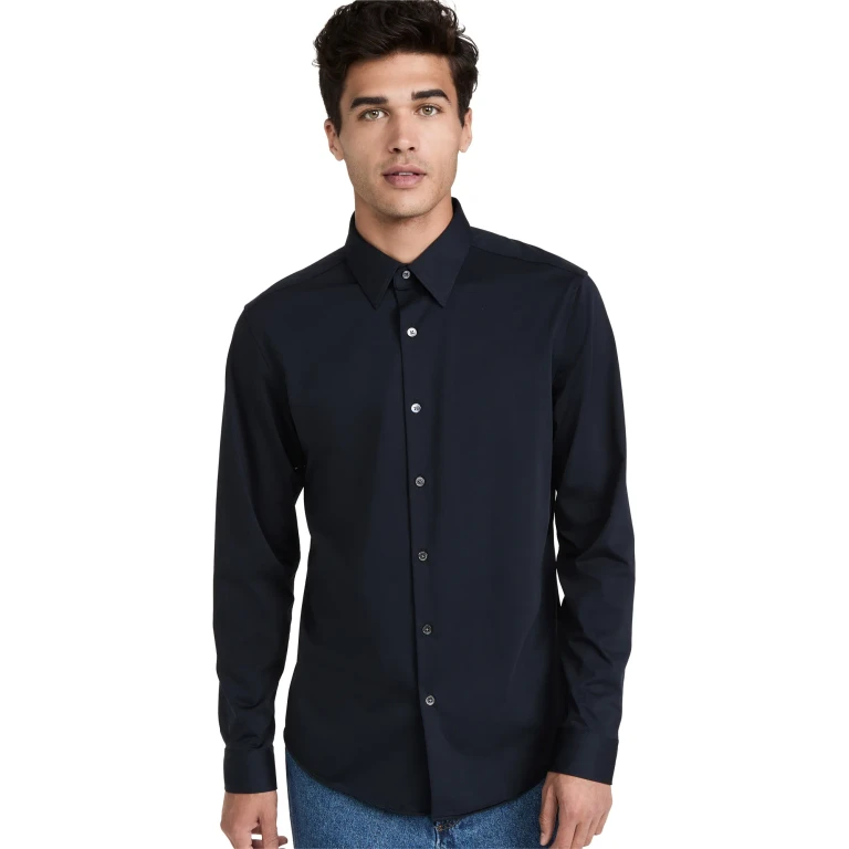 Ein kurzärmeliges Hemd von Theory aus kompaktem japanischem Strick mit Stretch und knitterfreiem Finish.