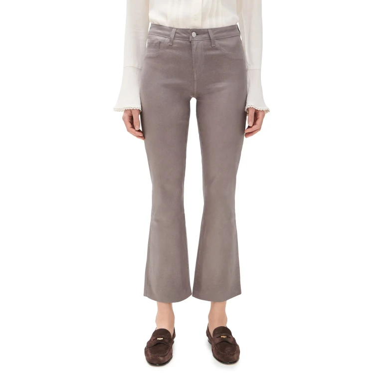 Diese L'AGENCE Selma Jeans zeichnet sich durch eine Baby-Bootcut-Passform und eine beschichtete Oberfläche in Schokoladenbraun aus. Das Modell besteht aus einer Mischung aus Baumwolle, Polyester und Elasthan, die für Formbeständigkeit und Bewegungsfreiheit sorgt. Die mittlere Bundhöhe und das Fünf-Taschen-Design bieten eine zeitlose Optik.