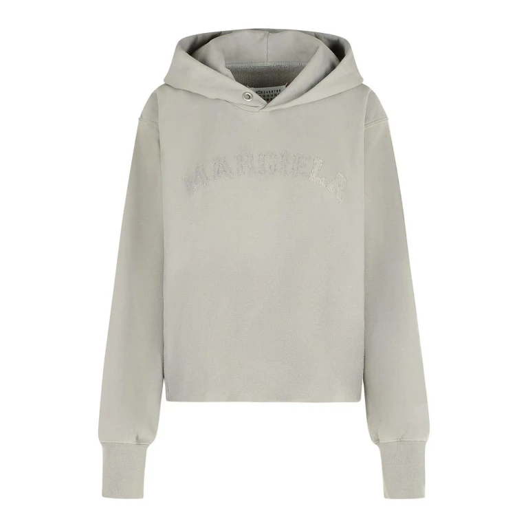 Grauer Sweatshirt von Maison Margiela mit Kordelzugkapuze, gesticktem Logo und gerippten Bündchen.