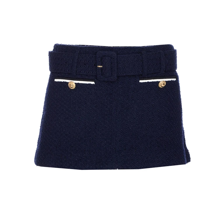 Dieser Skort von Self-Portrait besteht aus strukturiertem Twill-Gewebe in einem beigen Farbton. Das Design verbindet die Optik eines Rocks mit der praktischen Funktionalität integrierter Shorts. Das Modell ist hoch geschnitten und verfügt über einen dezenten Verschluss.