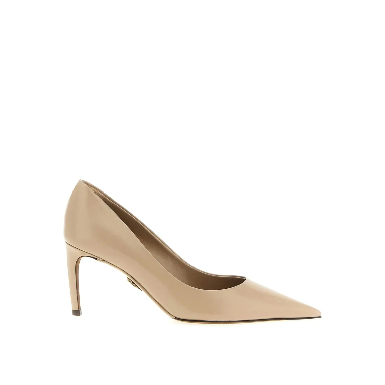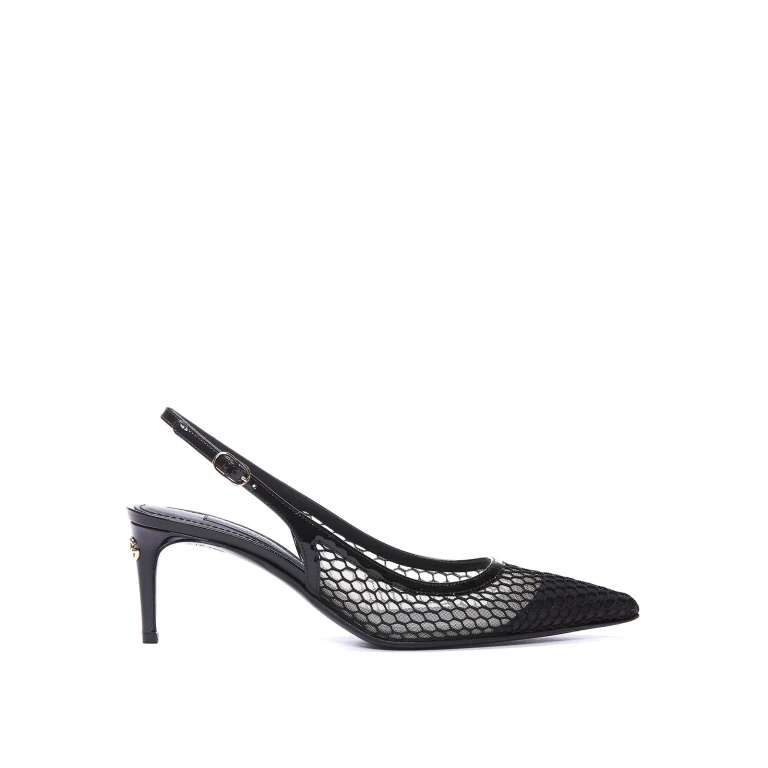 Punta puntiaguda, correa trasera ajustable, tacón de aguja, suela de cuero, hecho en Italia.
