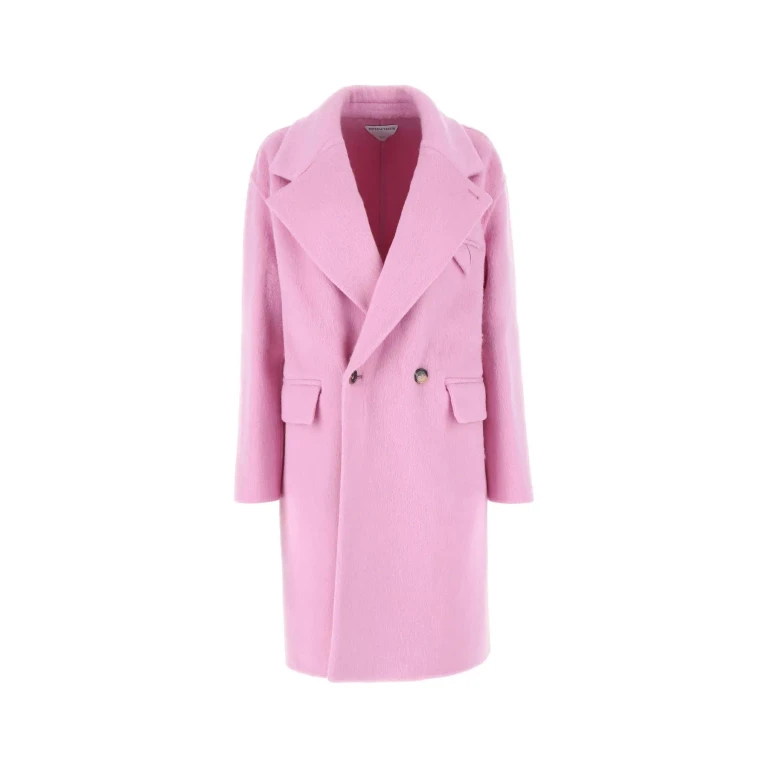 Un abrigo de mujer de Bottega Veneta en color Pink Shell, con cierre de botones y mangas largas.