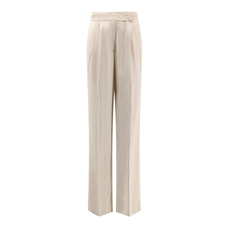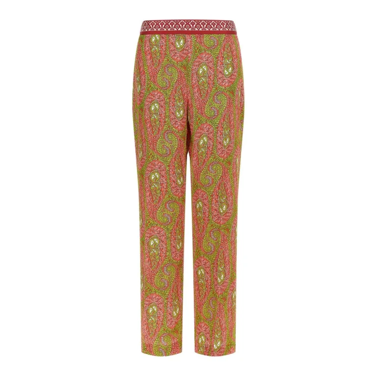 Pantalón casual azul Etro de cintura alta, bolsillos traseros ribeteados y piernas anchas, con estampado retro de cachemira y floral.