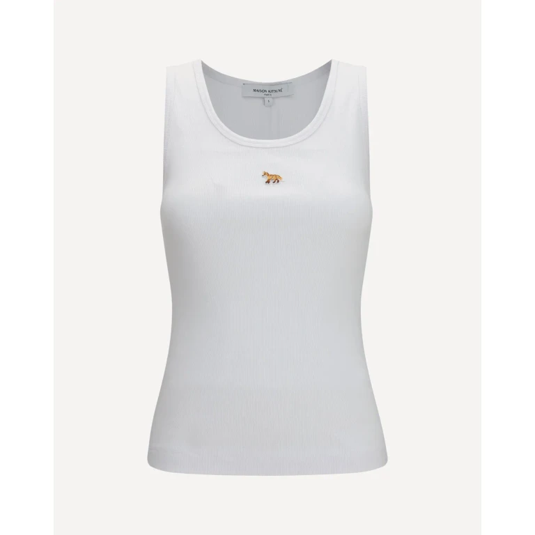 Esta camiseta de tirantes acanalada de Maison Kitsuné presenta un corte ajustado para mujer. Está confeccionada en un tejido de mezcla de algodón con acabado texturizado, ideal para combinar con otras prendas o llevar sola.