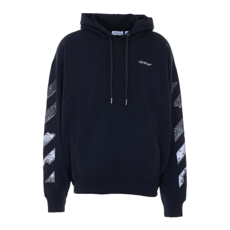 Sudadera con capucha de algodón negro de Off-White con cordón ajustable, bolsillo canguro y logo bordado.