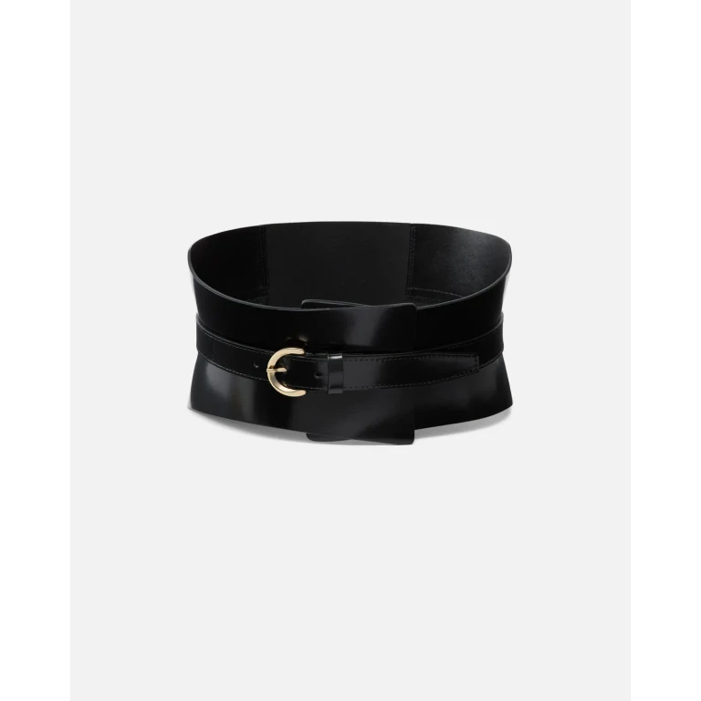 Cinturón estilo corsé de 13 cm de ancho en cuero suave y brillante con panel elástico en la espalda para un ajuste cómodo.