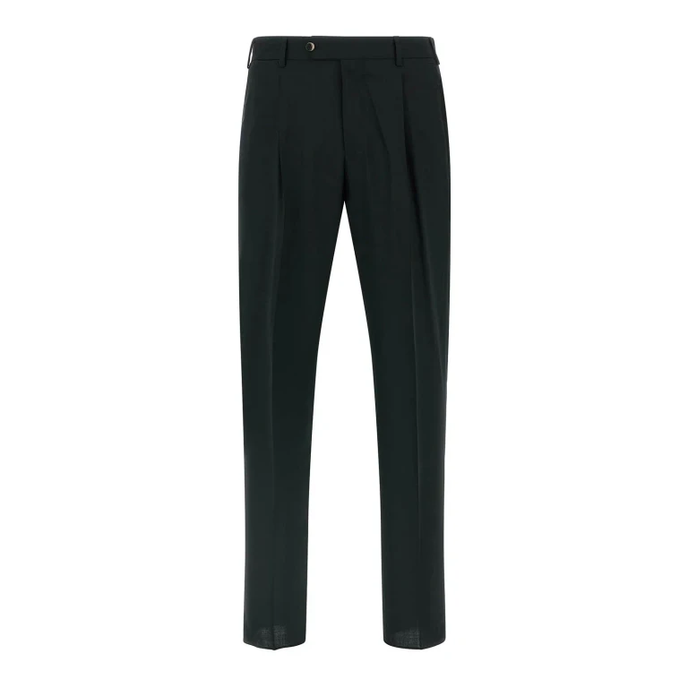 Pantalón de lana elástica con corte transversal, pliegue planchado y talle medio.