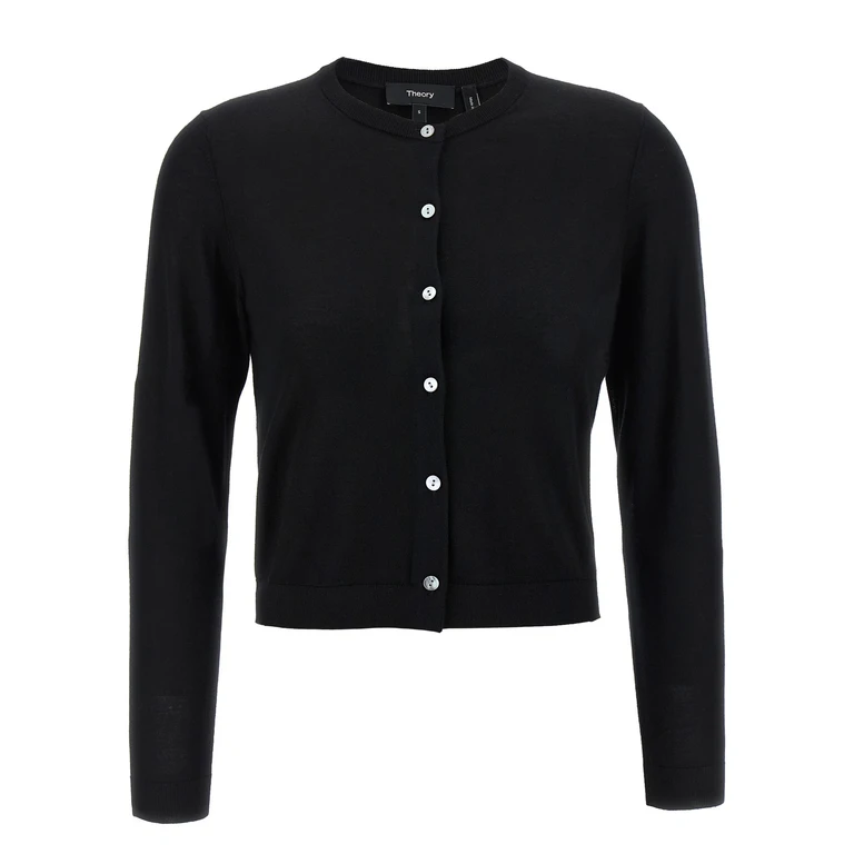Un cárdigan de lana cropped de Theory, que combina un ajuste entallado con comodidad casual.