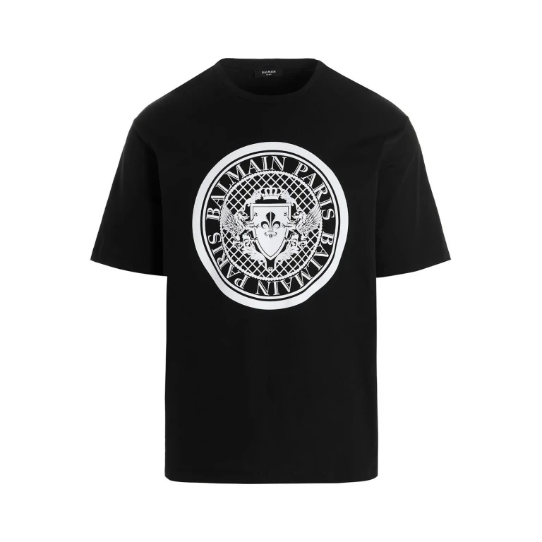 Camiseta corta de algodón con estampado de pañuelo Balmain en el pecho y la espalda, cuello redondo y mangas cortas.