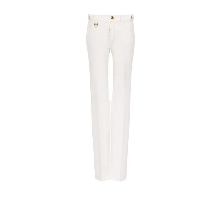 Estos pantalones de mujer de Chloé presentan un diseño de patchwork y una silueta acampanada. La prenda está confeccionada combinando diversos paneles de tela para aportar textura. El corte se ajusta a la cintura y se ensancha hacia el bajo.