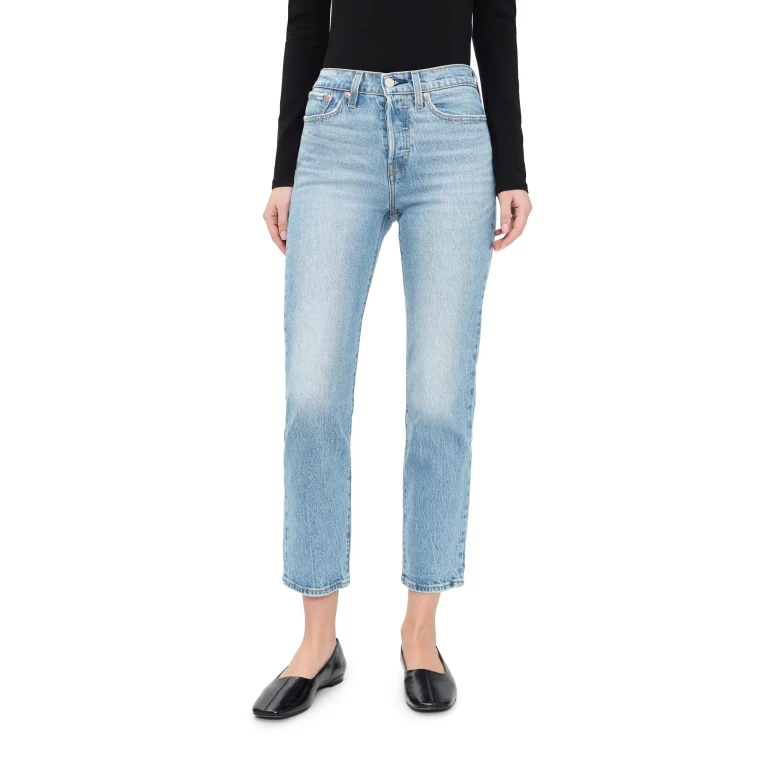 Los vaqueros Levi's Wedgie Straight presentan un talle alto y una silueta de pierna recta. El diseño está inspirado en los estilos denim vintage y está confeccionado en algodón sin elasticidad. El lavado Dance Around ofrece un acabado en azul claro con un desgaste sutil.