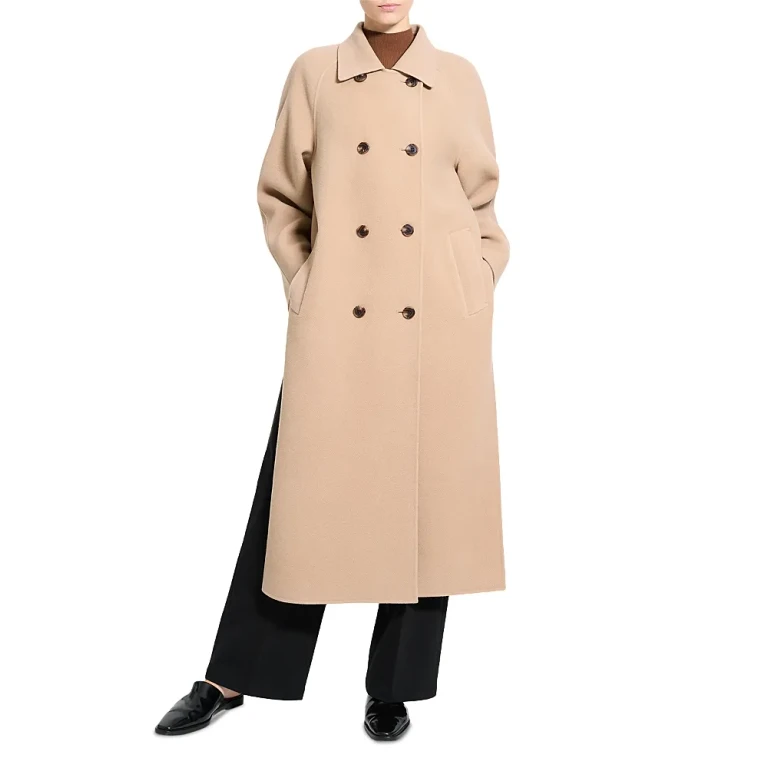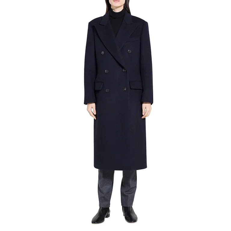 Un manteau en laine sur mesure de Theory, conçu pour une coupe sophistiquée et confortable.
