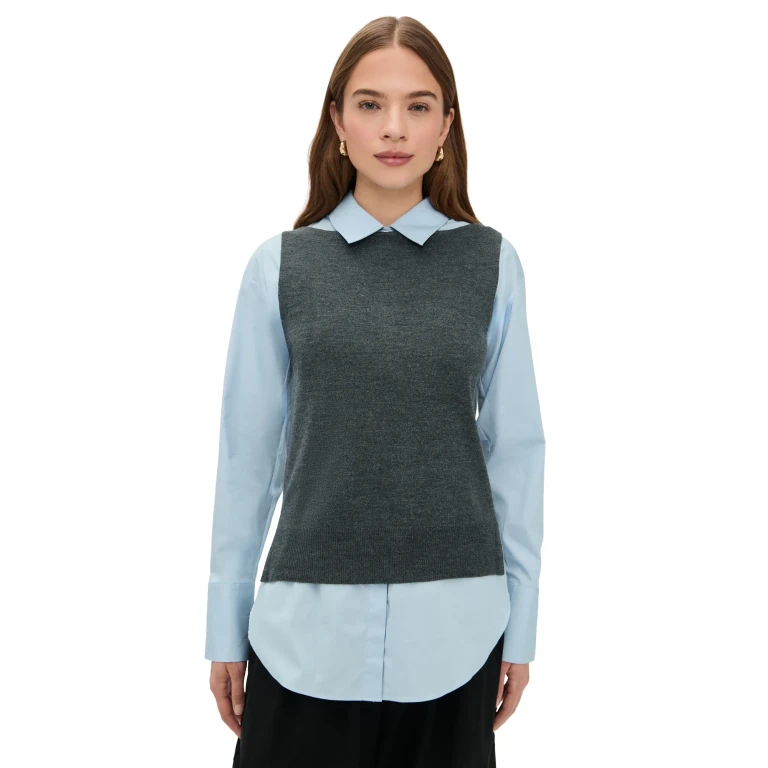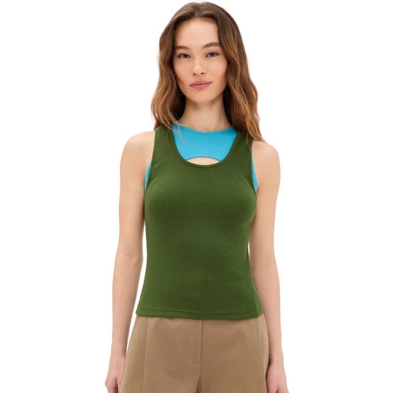 Le haut Damian de STAUD se distingue par son design bicolore en charcoal et glacier. Ce vêtement pour femme offre une coupe ajustée, idéale pour être porté seul ou superposé sous d'autres pièces.