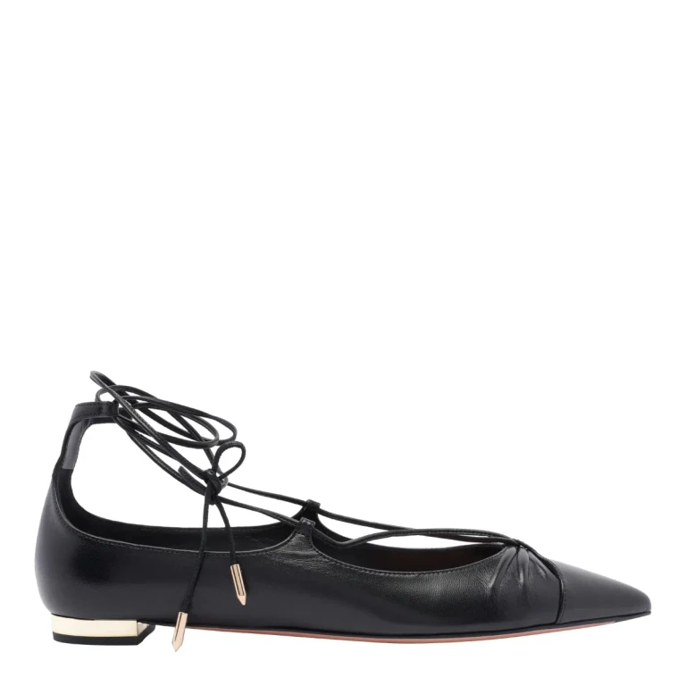 석류색 가죽으로 제작된 Aquazzura Gioia 플랫슈즈로, 일상적인 우아함을 선사합니다.