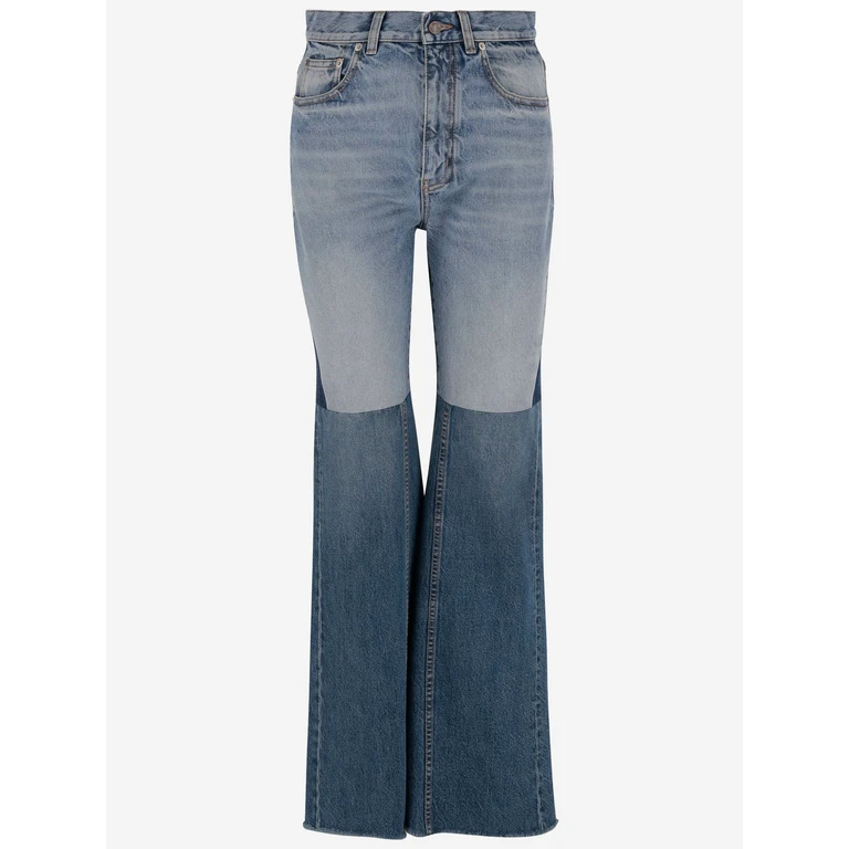 끌로에(Chloé)에서 선보이는 이 여성용 팬츠는 패치워크 디자인과 플레어 실루엣이 특징입니다. 다양한 소재의 패널을 조합하여 제작되었으며, 허리부터 밑단까지 넓게 퍼지는 와이드 핏으로 구성되었습니다.