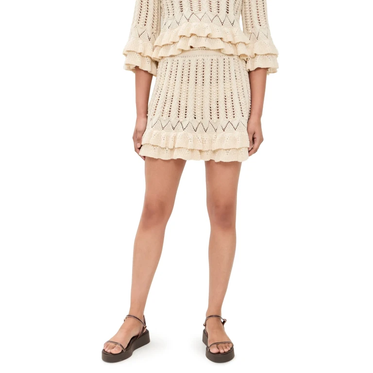 이자벨 마랑의 네이스 스커트는 섬세한 자수 디테일과 층층이 쌓인 러플 디자인이 특징입니다. 깔끔한 화이트 색상으로 제작되었으며, 38 사이즈로 구성되어 있습니다.