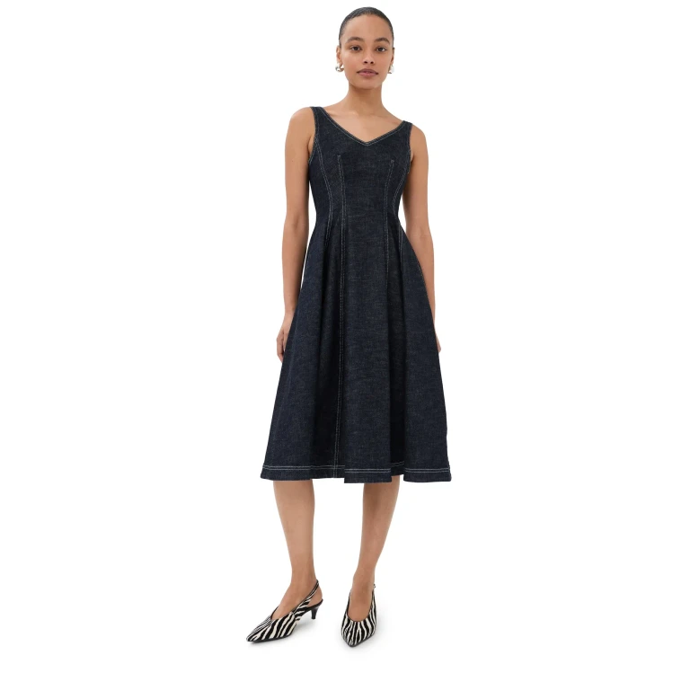 마르니(Marni) 브랜드의 블루와 블랙 색상 조합이 특징인 미디 기장 드레스입니다. 36 사이즈로 제작되었으며, 일상적인 착용에 적합한 디자인을 갖추고 있습니다.