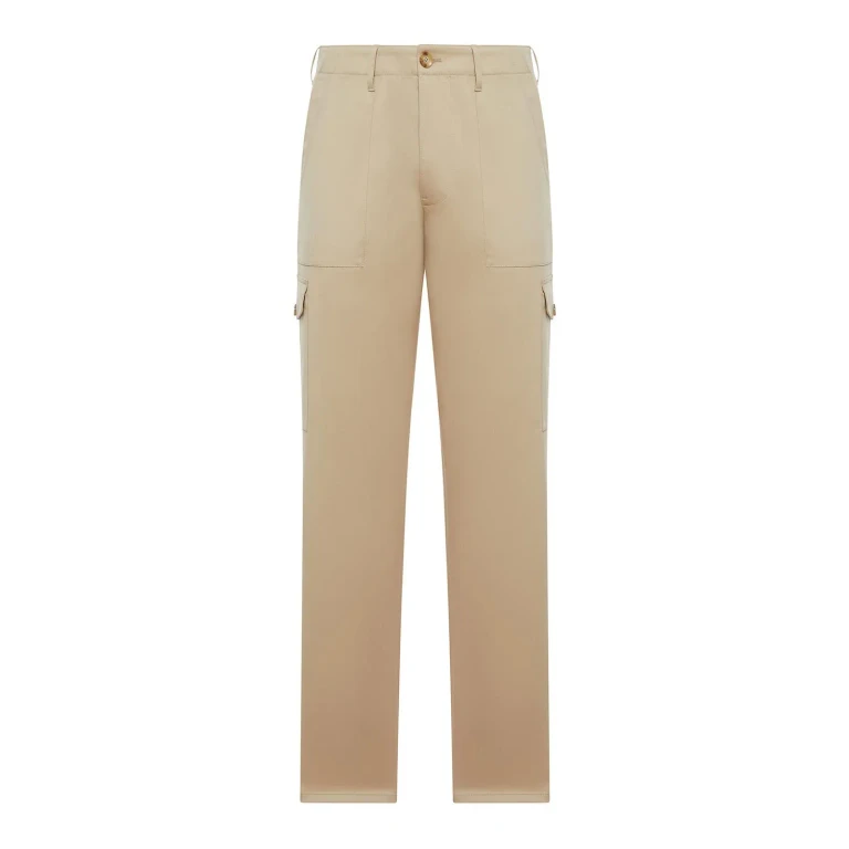 Katoenen cargo broek met retro ontwerp, ritssluiting en knoop, riemlussen, achterzakken met klep en cargozakken met ton-sur-ton print.