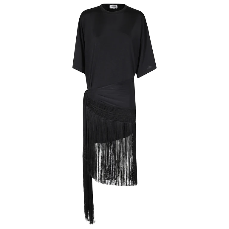 Um vestido maxi sem mangas com decote redondo, costas nadador e detalhe de nó na cintura, confeccionado em tecido stretch macio.