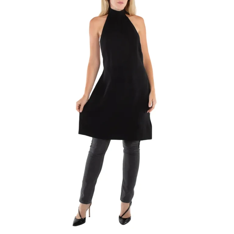 Burberry Ladies Black Silk Bib Funnel-Neck Sleeveless Dress