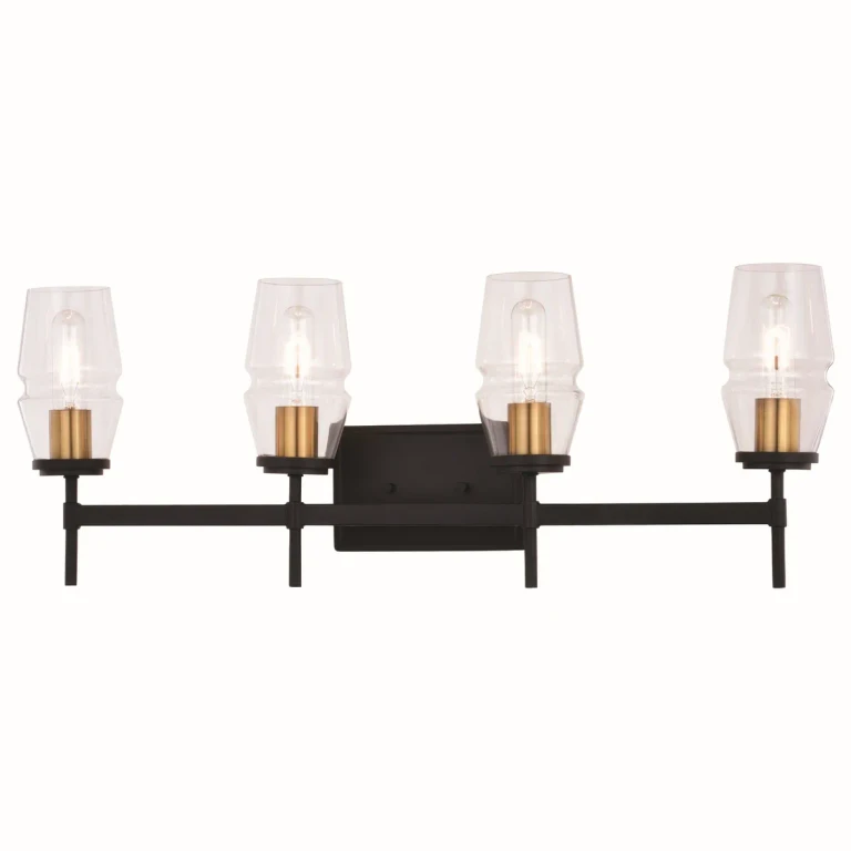 可直接购买US推荐报价全球最低价Belmont 4-Light Bathroom Vanity Light in Matte Black and Satin Brass 在 Bathroom — 来自 1 家商店的价格比较。