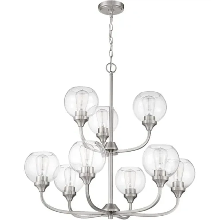 可直接购买US推荐报价全球最低价促销价Brushed Polished Nickel Nine Light Chandelier from the Shayna Collection 在 Ceiling Lights — 来自 1 家商店的价格比较。