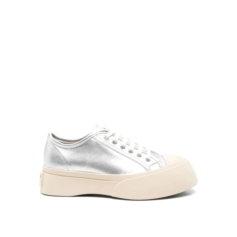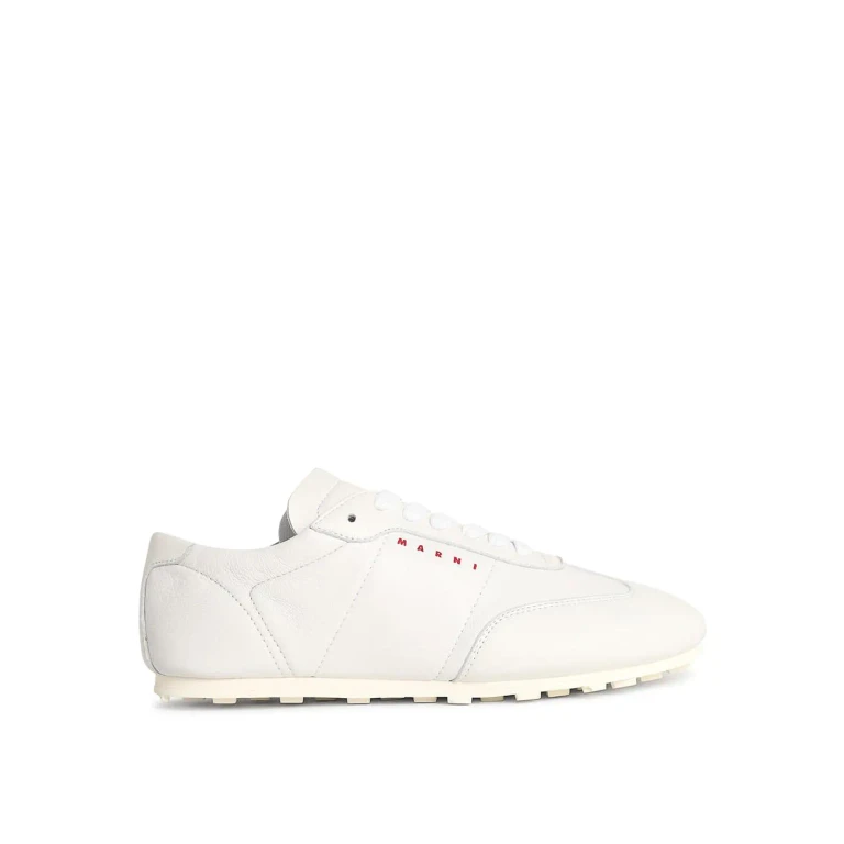 Marni Baskets 灰色纳帕皮革运动鞋,圆头设计,可调节搭扣带。